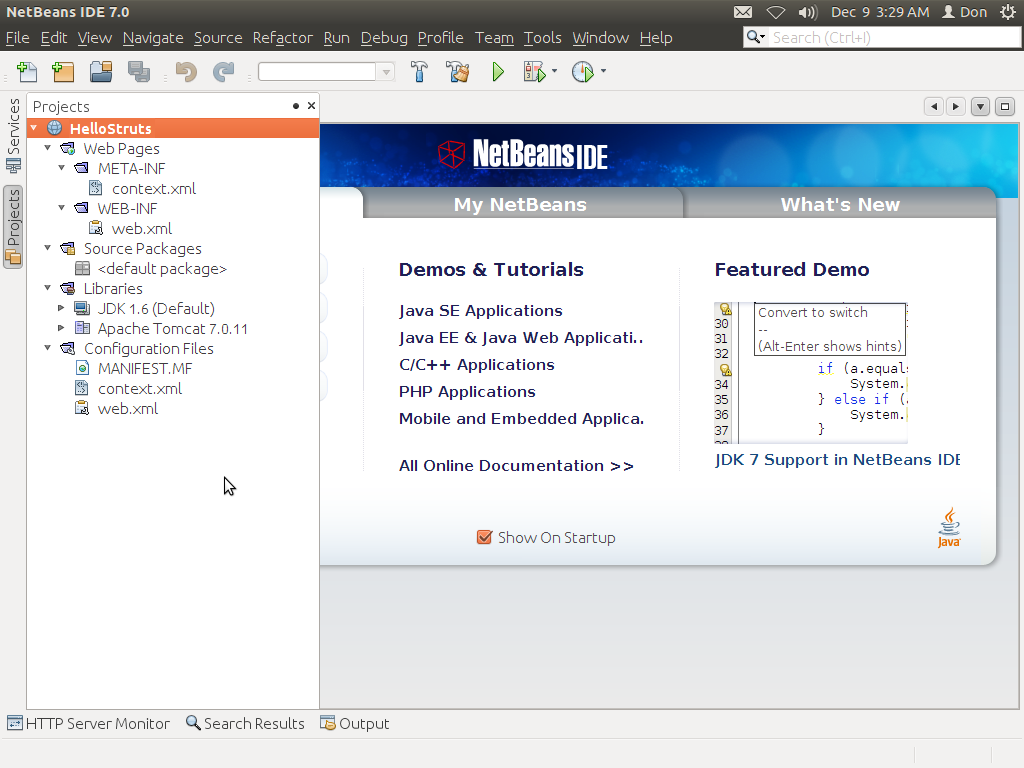 develop basic Hello World! Application using struts 2 in Netbeans 7.